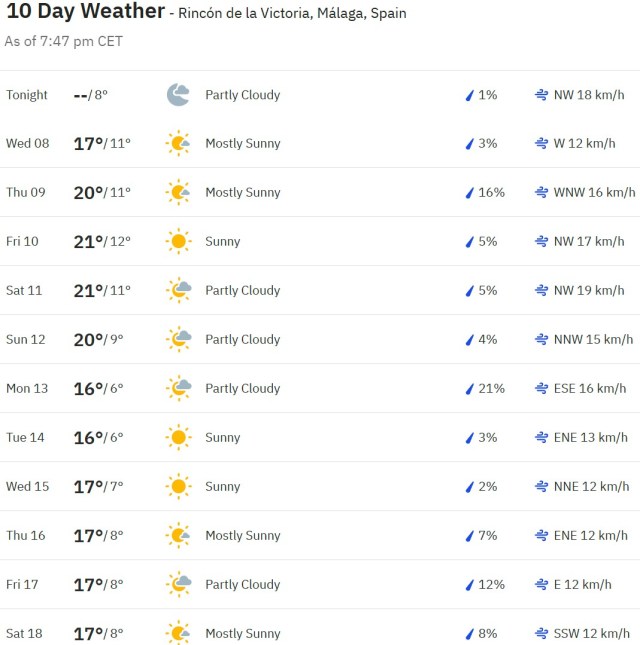 Local Weather: https://www.accuweather.com/en/es/torre-del-mar/306652/weather-forecast/306652