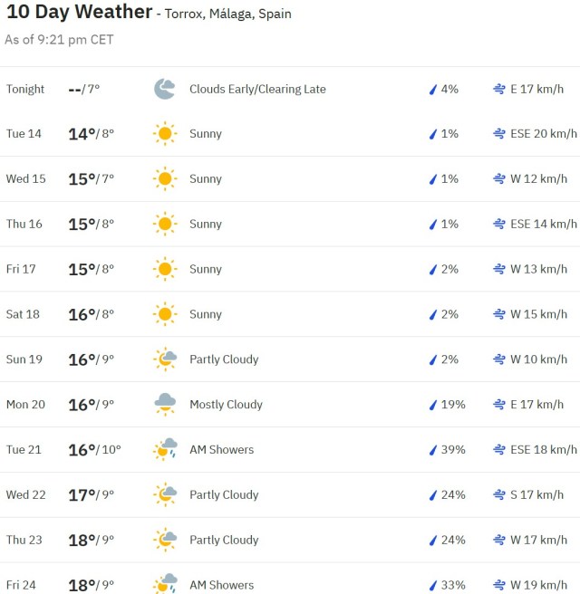 Local Weather: https://www.accuweather.com/en/es/torre-del-mar/306652/weather-forecast/306652