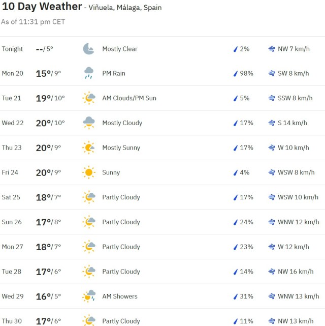 Local Weather: https://www.accuweather.com/en/es/torre-del-mar/306652/weather-forecast/306652