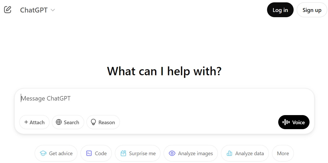 – When accessing the service’s web address, ChatGPT you will see ChatGPT Search front and center, with a message saying “What can I help you with?” You can immediately input your query into the text box. At the bottom of the text box are options that say “Search” and “Reason.” The Search option is the option that allows you to use the page without logging in. Selecting the Reason option will prompt you to log in or sign up to access ChatGPT.