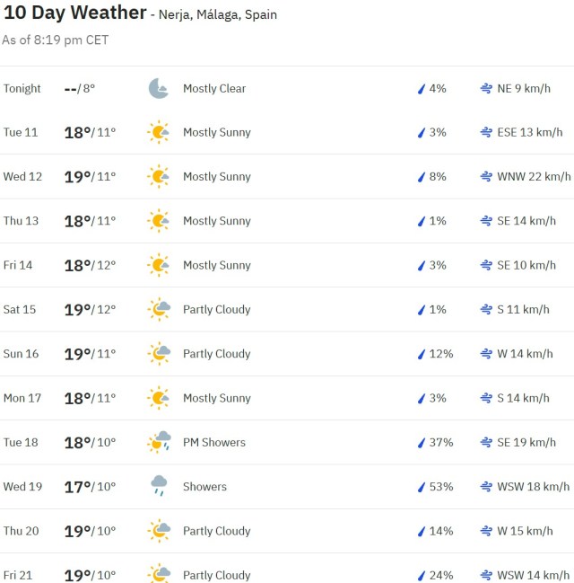 Local Weather: https://www.accuweather.com/en/es/torre-del-mar/306652/weather-forecast/306652