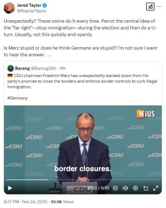 – Leader of the CDU Friedrich Merz just completely went back on what was said during the election and announced that there will be NO TALK of shutting the borders to those without valid documentation.