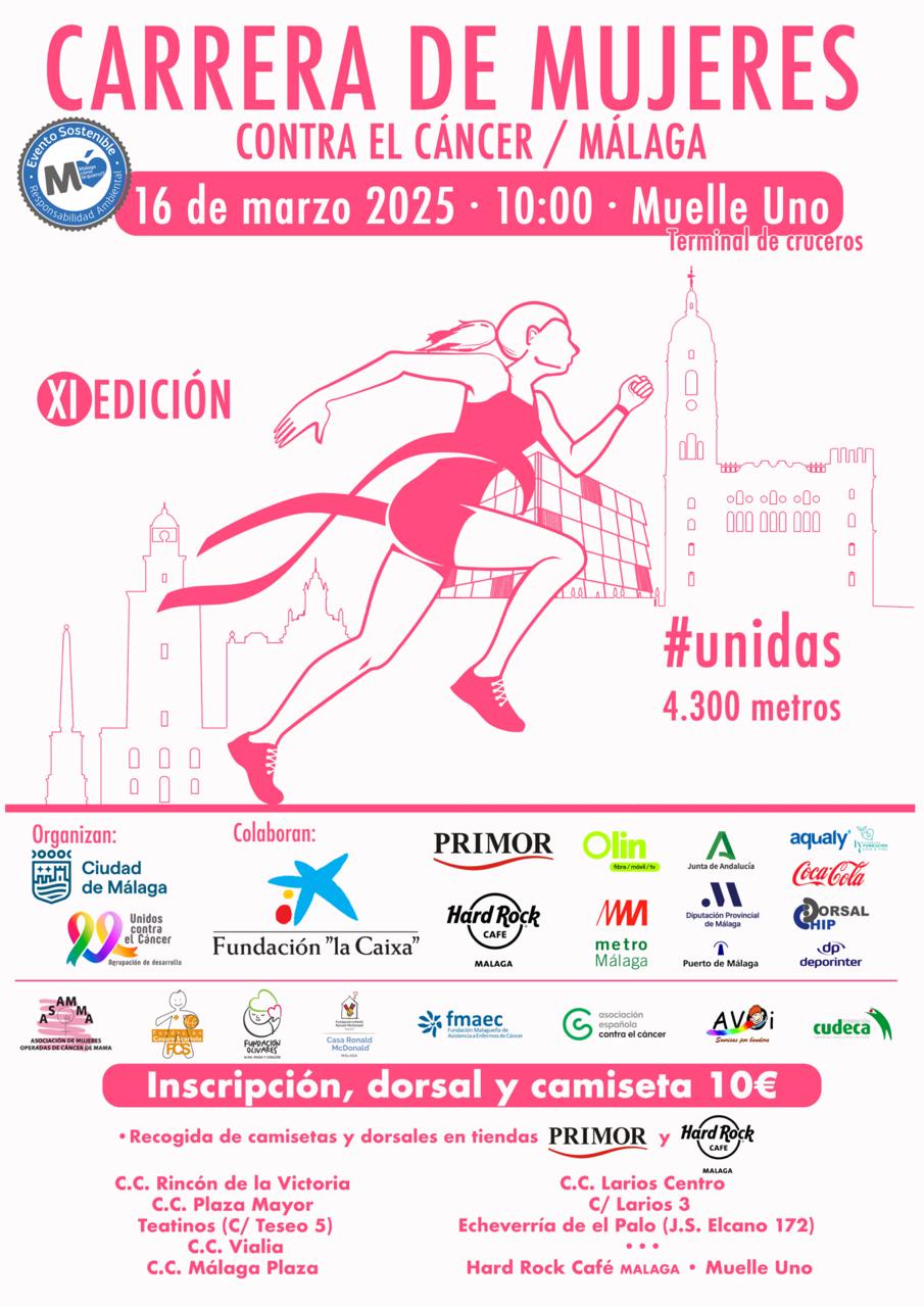 Women Against Cancer Race- Malaga: This annual charity event takes place on Sunday 16 March, 10am, around the Malaga Port for 4.3km. Sign up costs €10 and is available here. Info & signup: https://unidoscontraelcancermlg.es/actividades…