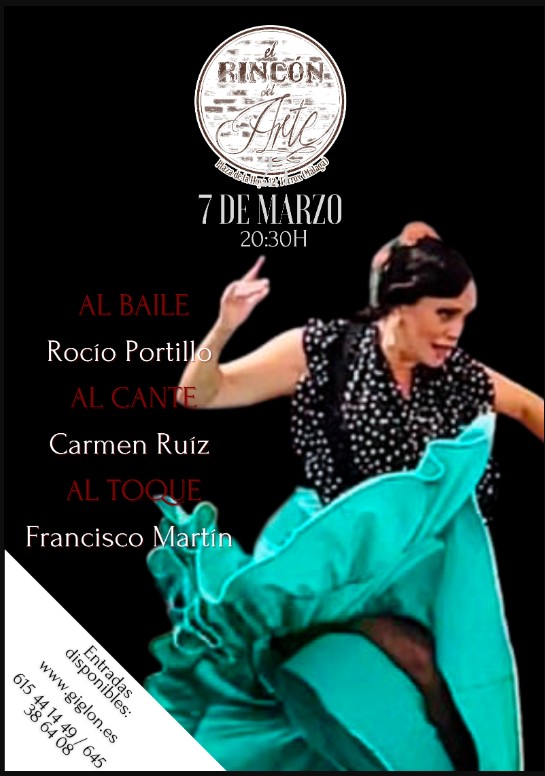 Tel: 615441449. Info & tix (€12): https://www.giglon.com/todos?idEvent=espectaculo-flamenco-rocio-portillo & Video Link