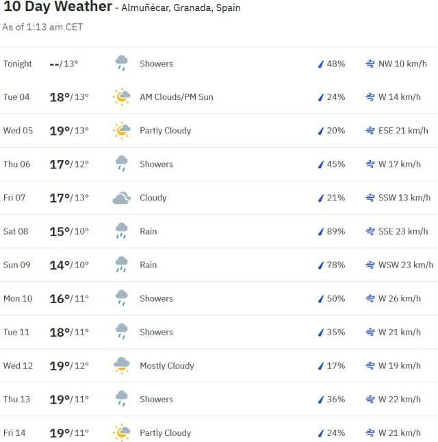Local Weather: https://www.accuweather.com/en/es/torre-del-mar/306652/weather-forecast/306652