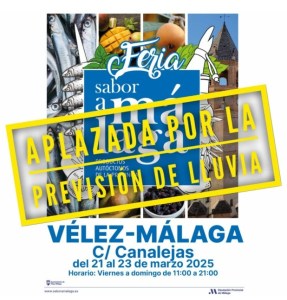 New dates to be announced. Ref: https://www.axarquiaplus.es/la-feria-sabor-a-malaga-de-velez-malaga-se-suspende-por-las-previsiones-de-lluvia/