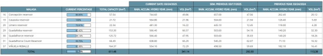 The reservoirs in Andalusia on Tuesday, March 25, 2025: