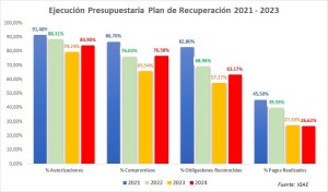 – This is the worst record since the Recovery Plan was launched four years ago. Although authorizations reached 83.90% and commitments 76.58%, recognized obligations stagnated at 63.17%, inflated by an accounting trickery that hides transfers between public bodies.