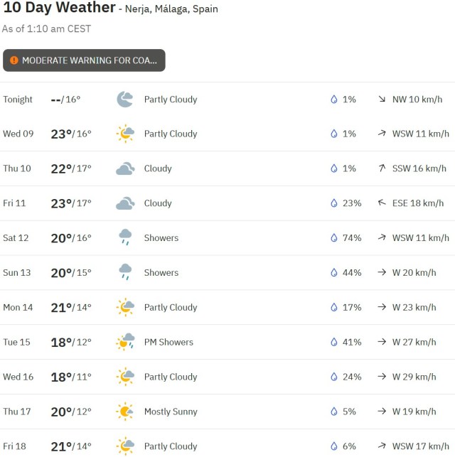 Local Weather: https://www.accuweather.com/en/es/torre-del-mar/306652/weather-forecast/306652