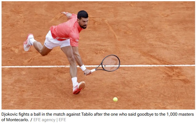 – Novak Djokovic crashed out of the Monte Carlo Masters on Wednesday when he lost his opening second round match 6-3, 6-4 to Chilean Alejandro Tabilo. Tabilo, ranked 32 in the world, will face the winner of the match between Monegasque Valentin Vacherot and the Bulgarian Grigor Dimitrov in the last 16.