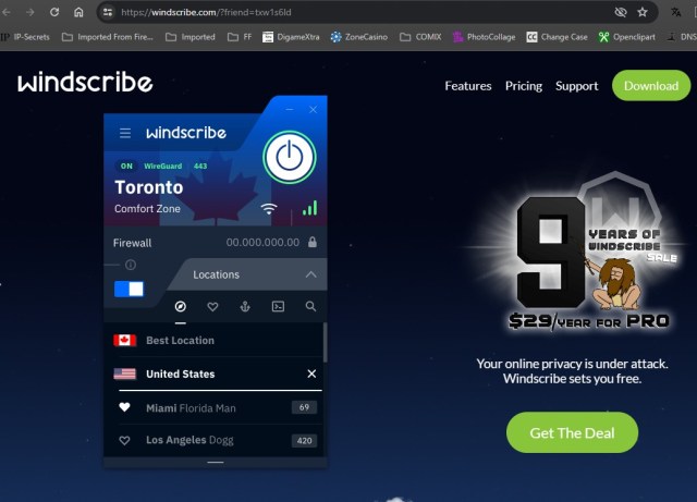 VPN Special Limited Time Offer, $29 per year: Windscribe VPN Pro is having a sale. Fastest speeds with unlimited data use on up to 5 devices. Only $29 or equivalent per year (currency conversion fees may apply with some banks/cards)! Use this link or click the image, and I will receive a referral bonus equal to whatever time you purchase: