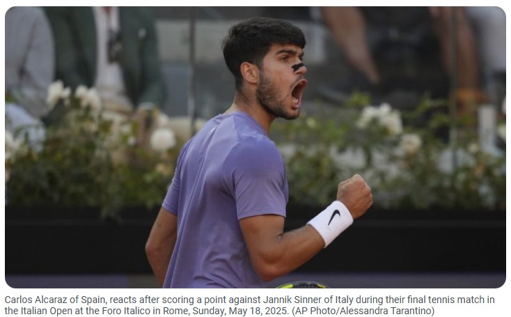 Tennis News- Alcaraz beats Sinner again to win the Italian Open and solidify his status as French Open favourite: