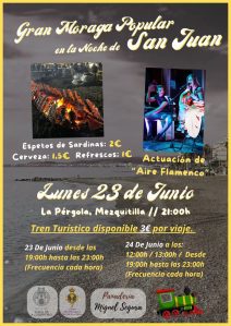 Noche del San Juan- Algarrobo: They will distribute 250 kilos of sardines in the Great Moraga de San Juan in Mezquitilla. Monday, June 23, from 9pm.