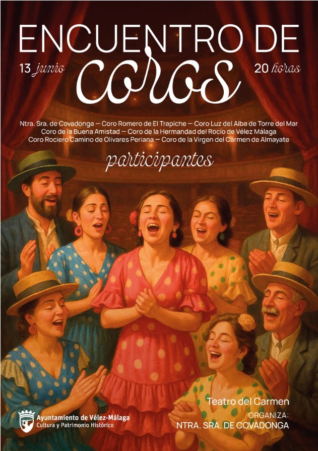 Groups: The Coro Romero de El Trapiche, Coro Luz del Alba de Torre del Mar, Coro de la Buena Amistad, Coro de la Hermandad del Rocío de Vélez-Málaga, Coro Rociero Camino de Olivares de Periana, Coro de la Virgen del Carmen de Almayate and Nuestra Señora de Covadonga will be present.