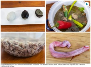 – Ancient duck eggs, turtle soup, wine from mouse fetuses, bull penises… the delights of the new temple in Palma of the most disgusting food in the world awaits your visit.