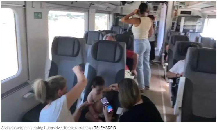 – A technical failure on an Alvia train between Madrid and Cádiz left some 427 passengers stranded for almost three hours near Almodóvar del Río on Sunday. They have now been offered alternative transport to reach their destination. The 427 passengers had to endure high temperatures in the carriages during a heatwave. Source, Spanish: https://www.malagahoy.es/andalucia/incidencia-tren-alvia-madrid-cadiz_0_2004548237.html
