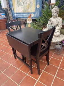 – Ikea folding table with drawer dark brown width 60cms (not opened) drop leaf 30cms each depth 78cms height 74cms price 90€.