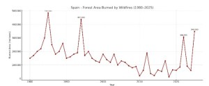 – The numbers say it all: Spain has more forested land and more woody crops than it did a decade ago. {Larger forests naturally have more exposure to wildfires, so an increase is to be expected some years. We have had worse years in terms of forest fires, and that was back when the forests were considerably smaller. See chart. -Ed.} Nevertheless, the Government persists in a catastrophic and misleading narrative to justify further climate pacts, new supervisory bodies and additional restrictions on economic activity in order to achieve their {globalist Agenda 2030} goals. Source, Spanish: https://www.libertaddigital.com/espana/politica/2025-08-20/espana-tiene-mas-bosques-y-menos-incendios-la-realidad-desmonta-la-propaganda-climatica-del-gobierno-7287201/