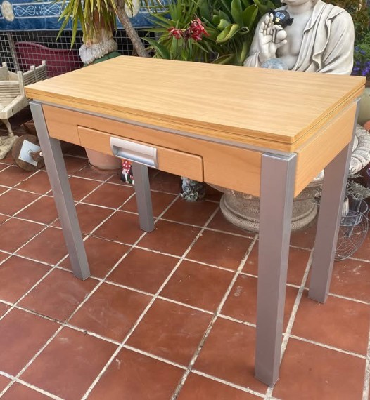 – Useful space saving folding table with drawer. 90 x 45 x 80cms opened 90 x 90cms price 30€.