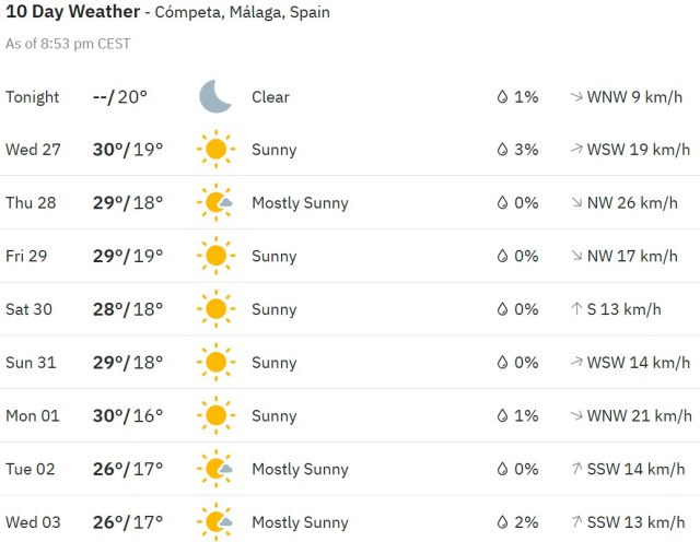 Local Weather: https://www.accuweather.com/en/es/torre-del-mar/306652/weather-forecast/306652
