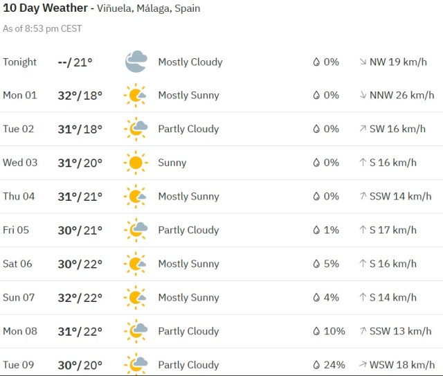 Local Weather: https://www.accuweather.com/en/es/torre-del-mar/306652/weather-forecast/306652