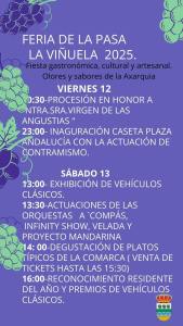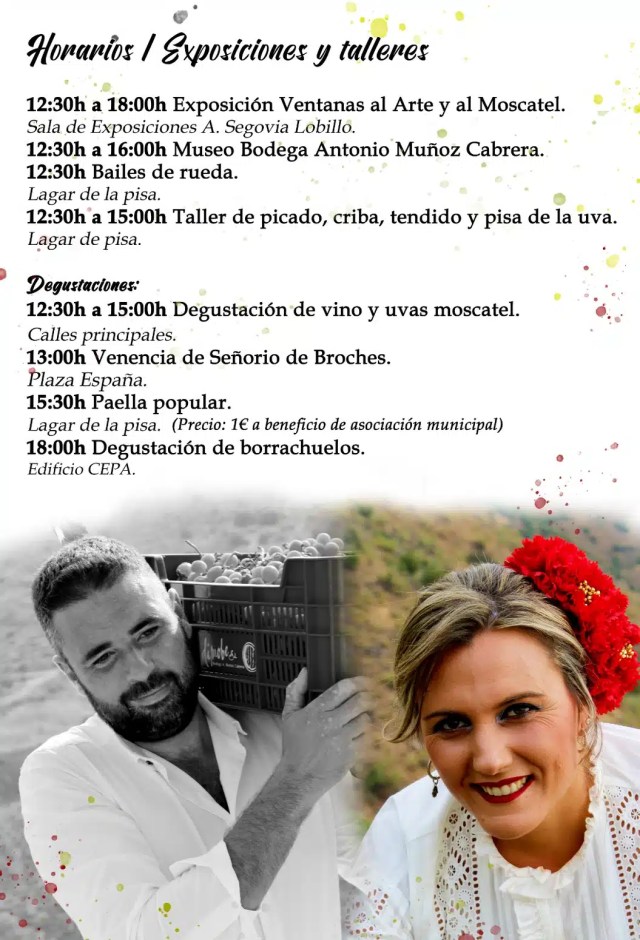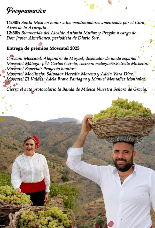 – The official program for the 2025 Viñeros Festival will begin early in the morning with Holy Mass to bless the grapes, accompanied by the voices of the Aires de la Axarquía Choir.