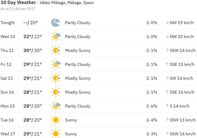 Local Weather: https://www.accuweather.com/en/es/torre-del-mar/306652/weather-forecast/306652