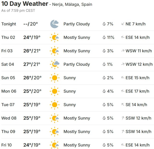Local Weather: https://www.accuweather.com/en/es/torre-del-mar/306652/weather-forecast/306652