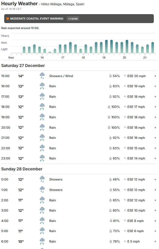 Weather forecast from https://weather.com/en-GB/weather/hourbyhour/l/edc19b72545ff2e4dbd7eeb4c063e02ce35f8e2a80d6e113291e99a66752eacf