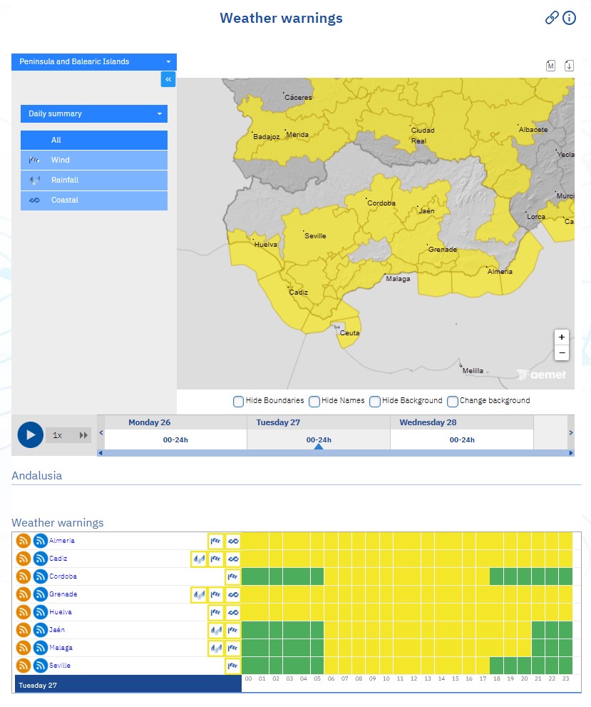 Yellow alerts for rain & winds. Source: https://www.aemet.es/es/eltiempo/prediccion/avisos?k=and&p=&l=