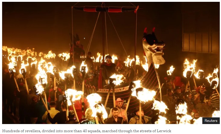 Famous Up Helly Aa festival sets Shetland’s skies ablaze: