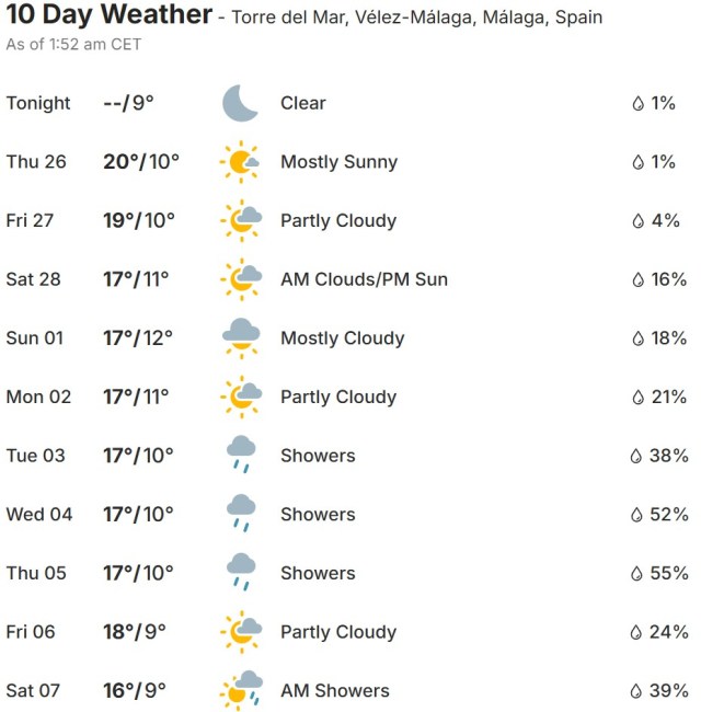 Local Weather: https://www.accuweather.com/en/es/torre-del-mar/306652/weather-forecast/306652