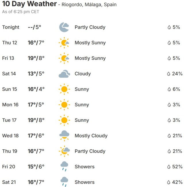 Local Weather: https://www.accuweather.com/en/es/torre-del-mar/306652/weather-forecast/306652