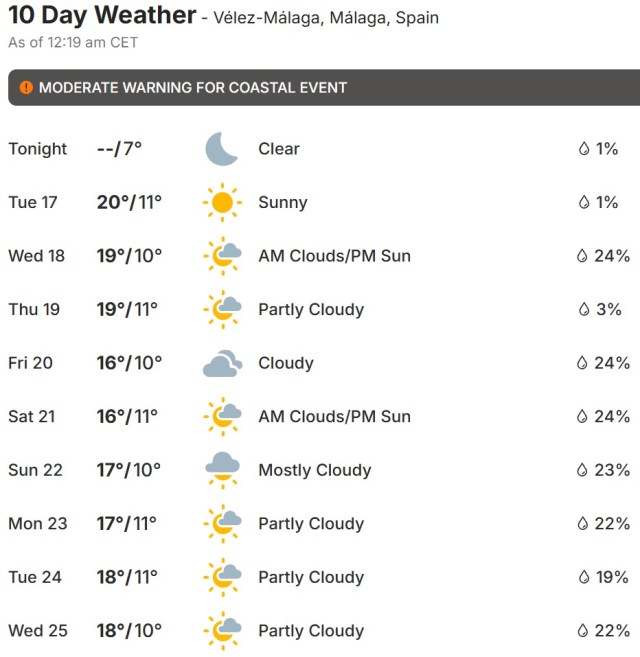 Local Weather: https://www.accuweather.com/en/es/torre-del-mar/306652/weather-forecast/306652