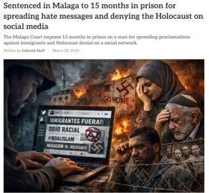 Source, Spanish: https://www.axarquiaplus.es/condenado-en-malaga-a-15-meses-de-prision-por-difundir-mensajes-de-odio-y-negar-el-holocausto-en-redes-sociales/