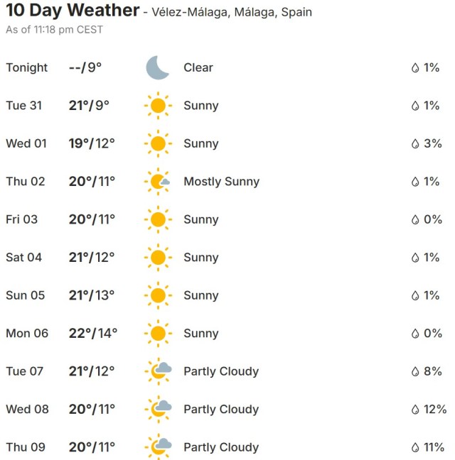 Local Weather: https://www.accuweather.com/en/es/torre-del-mar/306652/weather-forecast/306652