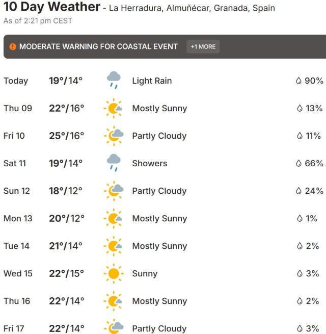 Local Weather: https://www.accuweather.com/en/es/torre-del-mar/306652/weather-forecast/306652