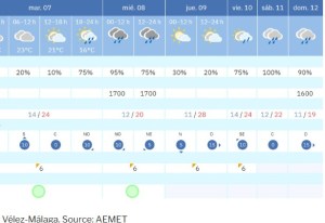 – With some uncertainty, the forecast for Friday shows the storm approaching the southwest of the Iberian Peninsula again, so scattered showers are possible in the Axarquía region. Hazy skies will also persist. Maximum temperatures will decrease and minimum temperatures will rise.