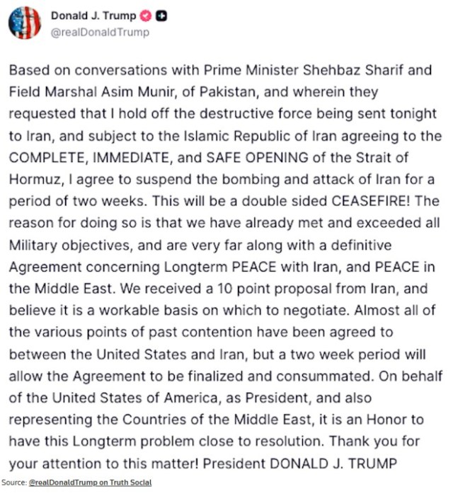 Trump agrees to suspend ‘bombing and attack of Iran’ for 2 weeks: