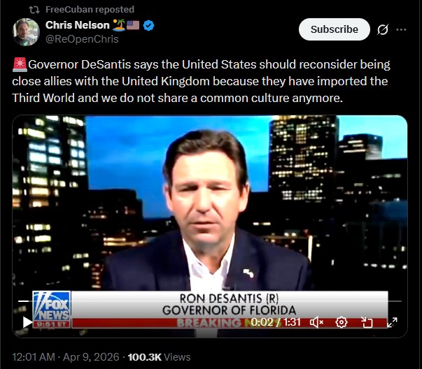 Florida Governor DeSantis says the United States should reconsider being close allies with the United Kingdom– They have imported the Third World and we do not share a common culture anymore: X Link