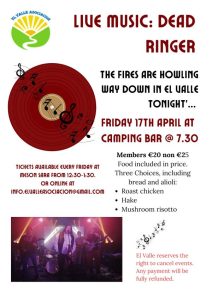 Asociacion El Valle are pleased to host Dead Ringers (well known Meatloaf tribute): Friday, 17 April