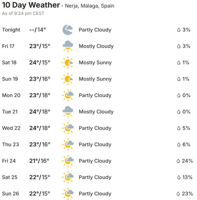 Local Weather: https://www.accuweather.com/en/es/torre-del-mar/306652/weather-forecast/306652