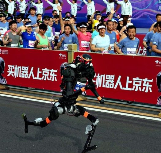 – A humanoid robot has been declared champion at a half-marathon running race held in Beijing, China, on Sunday, far outpacing human participants and beating the world record. The ‘autonomously navigated’ robot ‘Qitian Dasheng’ completed the 21-kilometer course in Beijing’s Yizhuang district with a time of 50:26. A ‘remotely controlled’ robot ‘Shandian’, did finish faster at 48 minutes and 19 seconds, but was delegated to second place due to scoring regulations that penalize remote controlled robots.