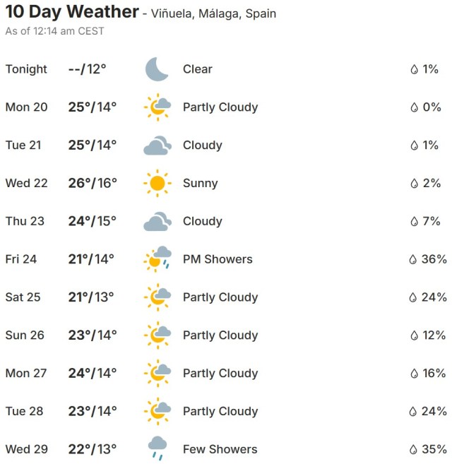 Local Weather: https://www.accuweather.com/en/es/torre-del-mar/306652/weather-forecast/306652