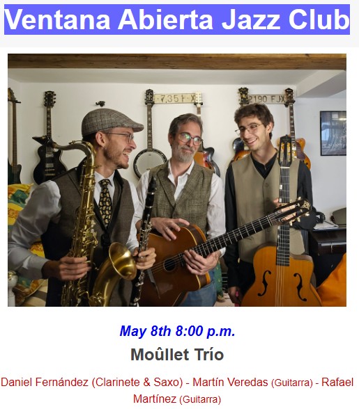 Moûllet Trío at Nerja Jazz Club: Fri, 8 May, 8pm