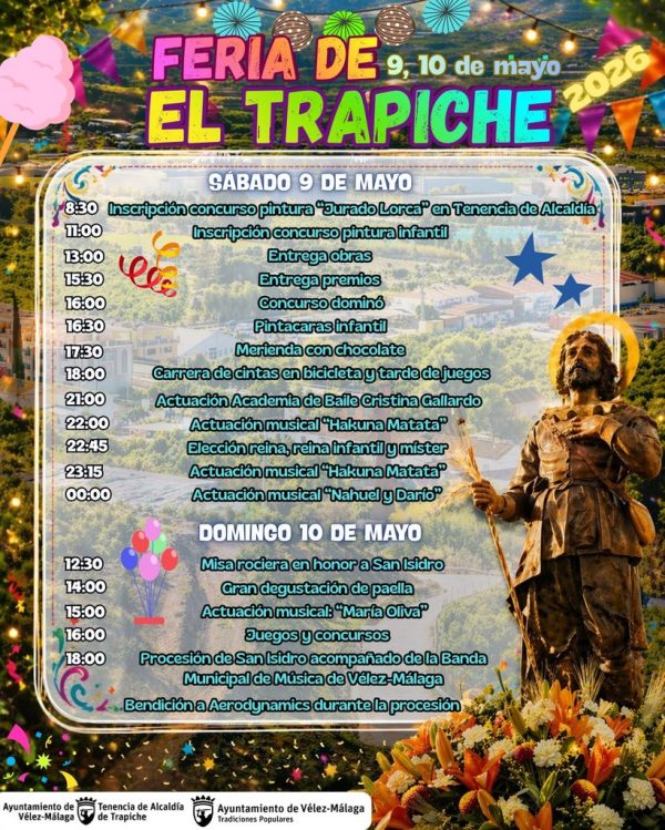 – Around 3:30 p.m., the Panda de Verdiales Primera de Comares will perform, followed by the Coro Rociero La Blanca Paloma de Corumbela. At 6:00 p.m. will be the concert ‘Next Stop’: Manuel Carrasco Tribute. The party will continue with DJ Oliver Gil, and DJ P. Rivas with his popular ‘saeta’ (a type of religious song).
