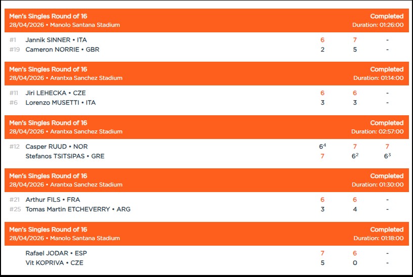 Tennis– Mutua Madrid Open: See all the scores and schedules here: