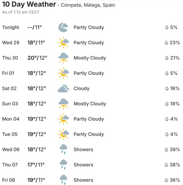Local Weather: https://www.accuweather.com/en/es/torre-del-mar/306652/weather-forecast/306652