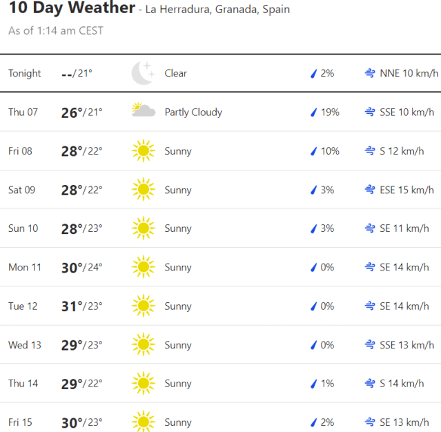 Local Weather: https://www.accuweather.com/en/es/torre-del-mar/306652/weather-forecast/306652