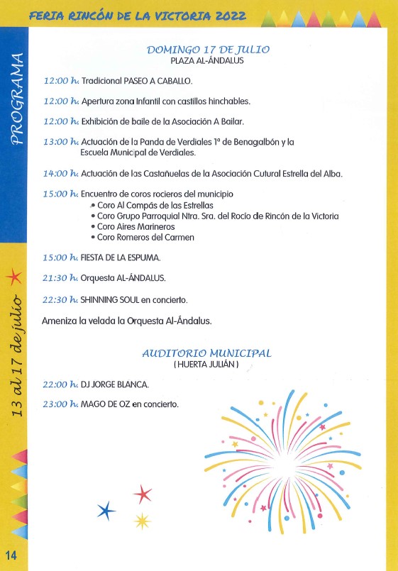 – On Saturday, 9th July, the programme kicks off with the Costilla and Amapola water festival. At midday a paella will be offered courtesy of the Merendero AYO, and there will be performances and dances by the Grupo de Fandangos Cortijeros de Río de la Miel, Miguel González, and DJ Toulalan and Adriana.